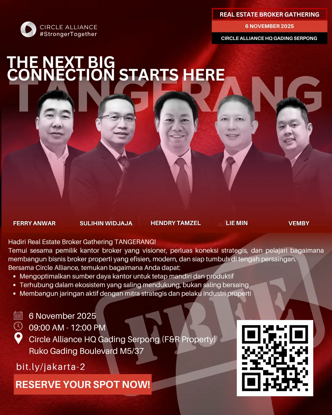 Circle Alliance invites you to join the Tangerang Broker Gathering at our exclusive event, “POWER UP Your Real Estate Business!” — a unique opportunity to grow your property business through collaboration, learning, and powerful networking.
